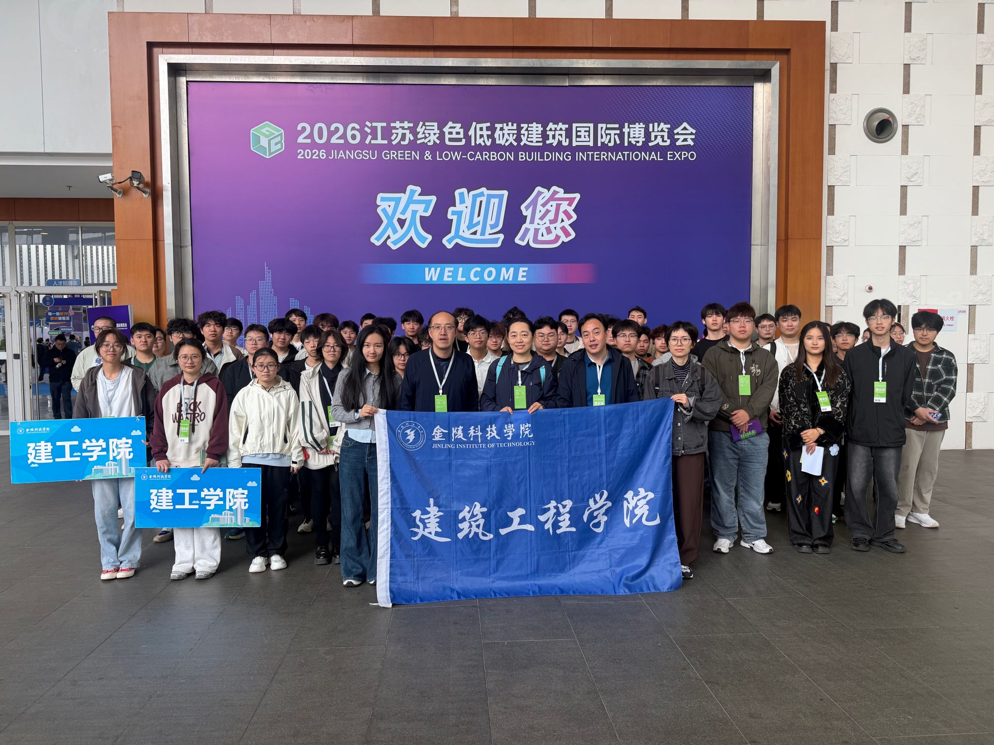 为加强学生专业教育、积极拓展就业市场,助力毕业生高质量就业,4月11日,建筑工程学院组织近200名学生赴南京国际博览中心参加“2026江苏绿色低碳建筑国际博览会”及同期举行的“全省绿色低...
