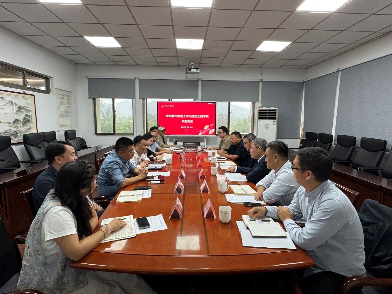 2025年10月16日,滁州学院土木与建筑工程学院党委书记叶 高、副书记陈绍山、副院长顾留碗、副院长张磊一行来我院调研交流。建筑工程学院党委书记杨如丽、院长刘志峰、副书记郑庆秋、副院长黄...