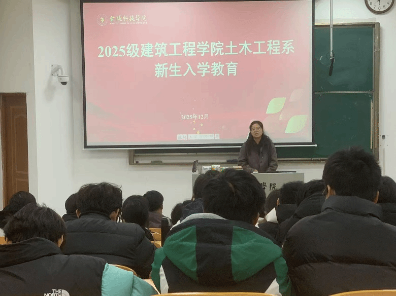 2025年12月16日,金陵科技学院建筑工程学院土木工程系2025级新生入学教育顺利举行。本次活动邀请土木系系主任贾慧娟、青年教师杨来运博士、企业班主任李国老师及在读硕士生孙建宇学长,为新...