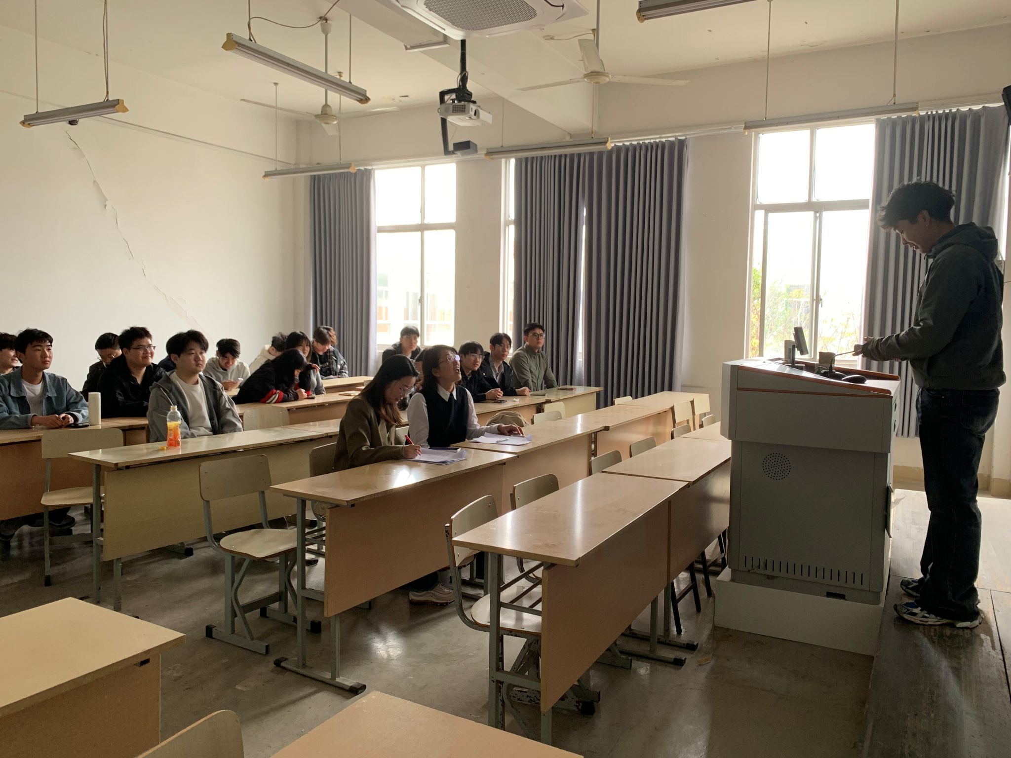 本次中期考核以现场答辩形式开展,考核重点聚焦毕业论文(设计)工作进展、学生投入程度、师生指导交流情况,以及阶段性成果的完整性与规范性,充分贴合我校工程管理专业“重实践、强应用”的人才培养目标。答辩现场氛围严谨有序、务实高效,参与答辩的学生准备充分、精神饱满,依次围绕毕业设计的总体构思、研究方案、现阶段完成情况、后续推进计划等内容进行系统汇报,清晰展现了自身的专业思考与实践探索。