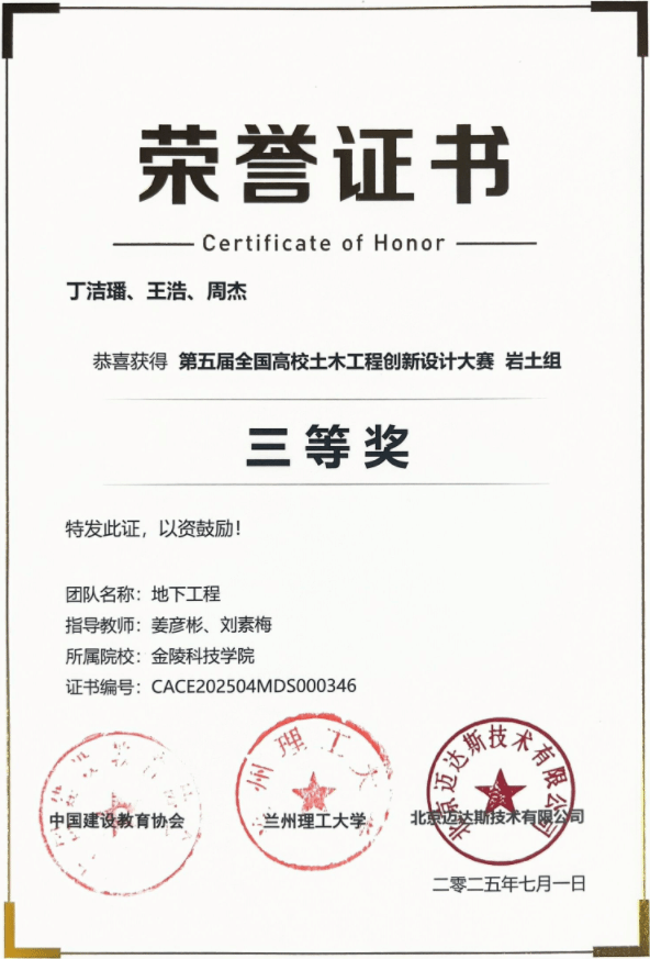 2025年6月10日~12日,第五届全国高校土木工程创新设计大赛总决赛成功举办。全国高校土木工程创新设计大赛由中国建设教育协会主办,旨在引导高等学校培养具有创新意识的优秀土木人才,鼓励土木学子积极创新、相互协作,运用信息技术解决实际问题,提高专业水准与综合素质。